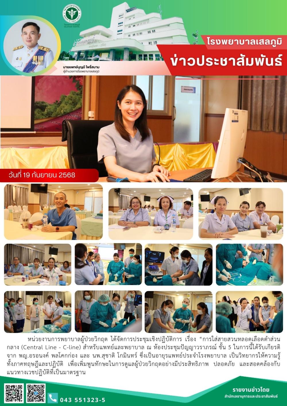 หน่วยงานการพยาบาลผู้ป่วยวิกฤต ได้จัดการประชุมเชิงปฏิบัติการ เรื่อง “การใส่สายสวนหลอดเลือดดำส่วนกลาง (Central Line - C-line) สำหรับแพทย์และพยาบาล ณ ห้องประชุมปัญญาวราภรณ์ ชั้น 5 ในการนี้ได้รับเกียรติจาก พญ.อรอนงค์ พลโคกก่อง และ นพ.สุชาติ โกมินทร์ ซึ่งเป็นอายุรแพทย์ประจำโรงพยาบาล เป็นวิทยากรให้ความรู้ทั้งภาคทฤษฎีและปฏิบัติ เพื่อเพิ่มพูนทักษะในการดูแลผู้ป่วยวิกฤตอย่างมีประสิทธิภาพ ปลอดภัย และสอดคล้องกับแนวทางเวชปฏิบัติที่เป็นมาตรฐาน